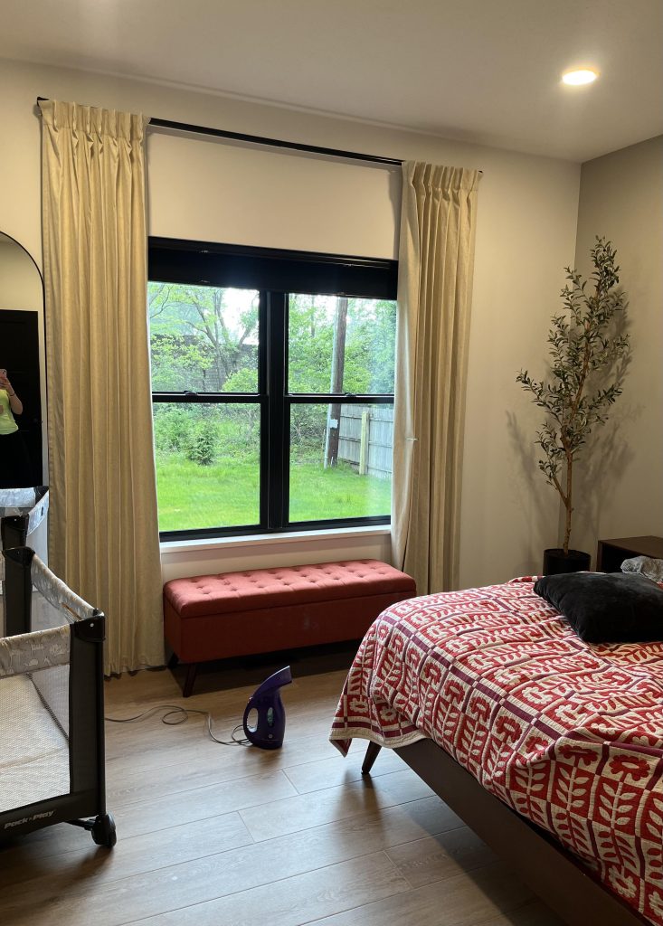 Avoid heavy drapes that block light and create shadows. If your room doesn’t get much natural light, supplement with warm artificial lighting such as wall sconces, bedside lamps, or LED strips to create a cozy and inviting atmosphere.
