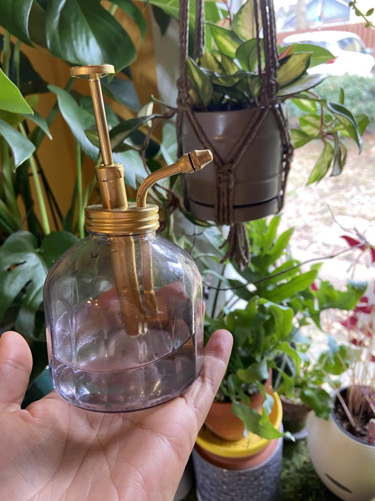 Use a spray bottle with a fine mist and lightly mist the leaves in the morning so they dry throughout the day. This creates a microclimate around the plant, helping to prevent leaf browning and crisping.