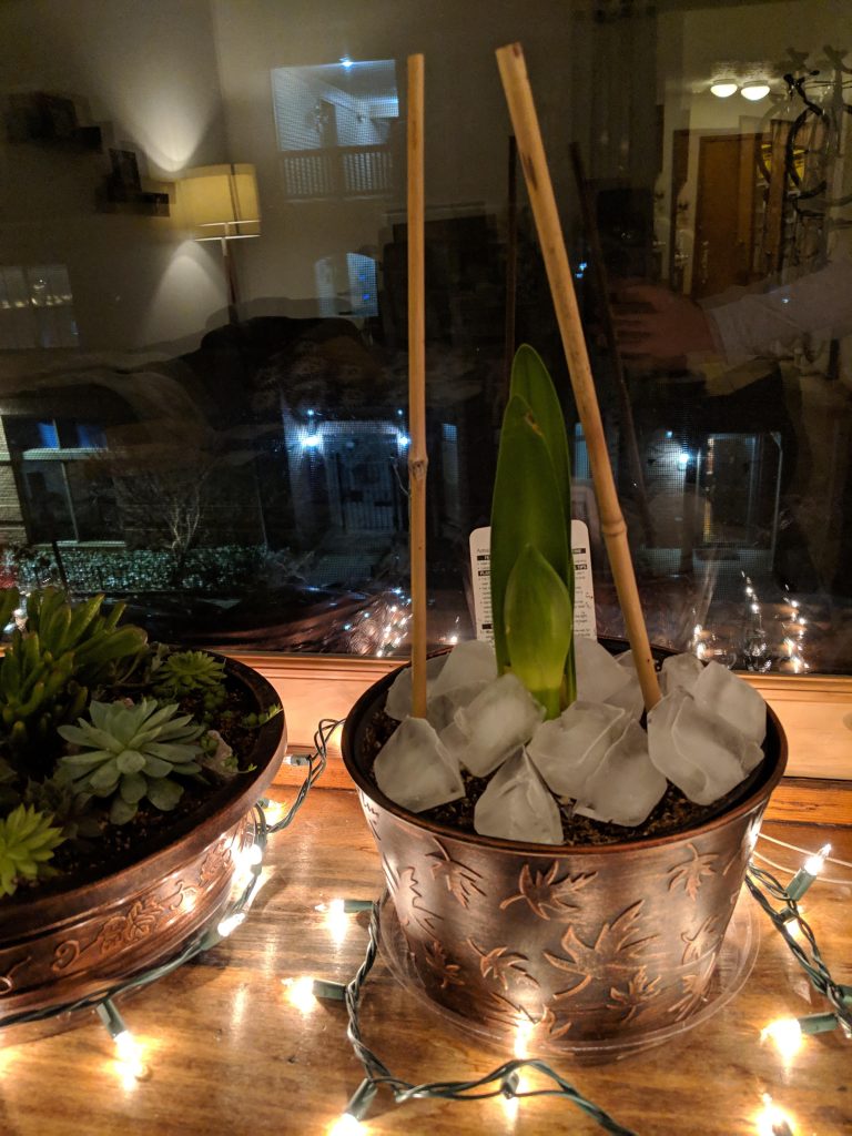 The idea is to place a few ice cubes on top of the soil and let them melt slowly, releasing water gradually into the root zone.