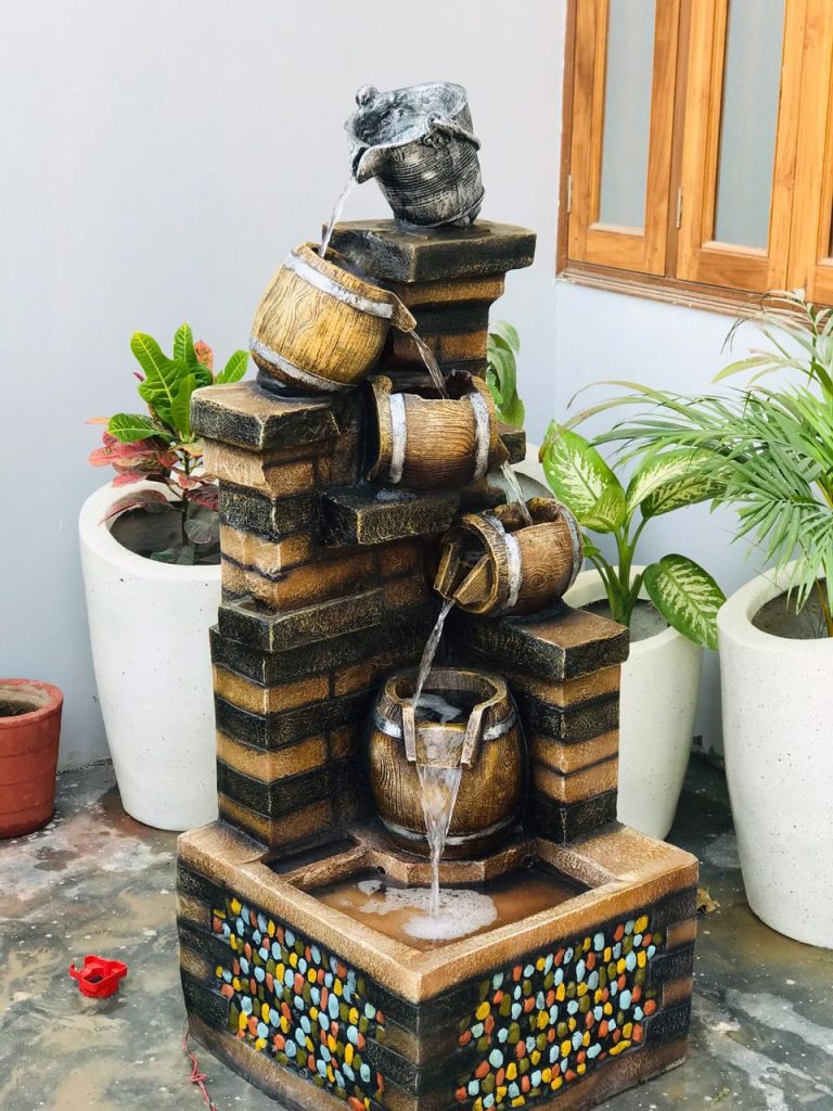 Water can flow in through fountains or artwork with waves, while fire may come from candles or warm lighting.